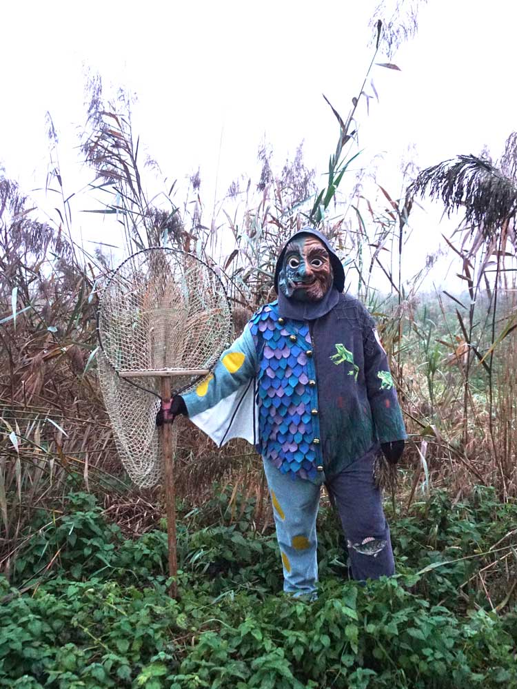 Die Holzmaske verkörpert zugleich Fisch, Frosch und Mensch, d.h. es kommen verschiedene Züge von Lebewesen zum Ausdruck. Sein Reich ist die Schussenmündung, und so gibt auch die Grundfarbe der Maske verschiedene Färbungen der Moor- und Riedlandschaft der Schussen wieder. Die Ähnlichkeit mit einem Fisch (Weller) zeigt, dass er zu reichem Fischfang verhelfen soll. Die Augen eines Frosches lassen erkennen, dass er vor Feinden und Übelsachern warnen will, denn der Frosch gilt in der Natur als Warner und Mahner. Die Hörner (Fühler) verkörpern sein Dasein als Geist und weisen auf seine Feinfühligkeit hin. Die teilweise Menschlichen Züge (z.B. Zahn) trägt er, weil er gerne die Nähe des Menschen sucht. Die grüne Grundfarbe des Häses wird an den Armen und an den Beinen durch gelbe Flecken, die an einen Lurch erinnern, unterbrochen und das gesamte Oberteil ist durch graue Filzschuppen, abgeleitet vom Fisch bedeckt.